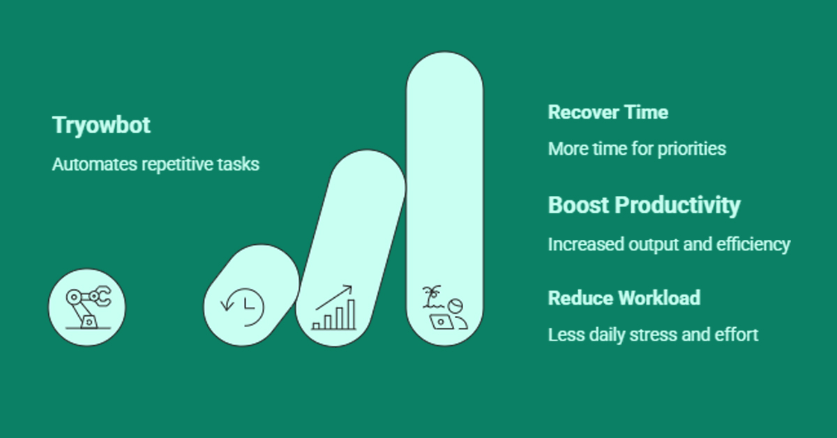 Workdays don’t have to be stressful. Tryowbot helps you work smarter, not harder, by automating repetitive tasks,