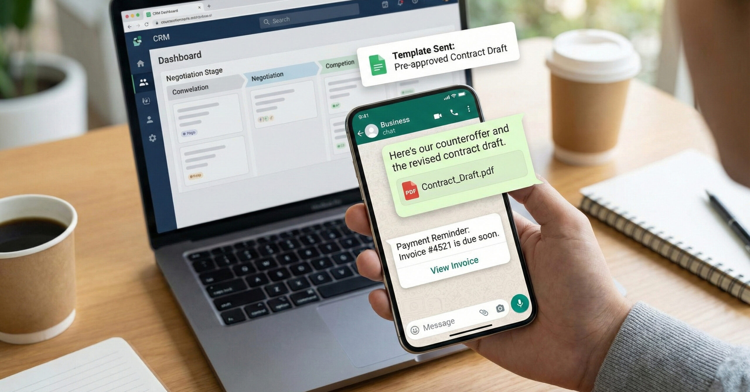 - Send counteroffers, contract drafts, and invoices directly in chat.